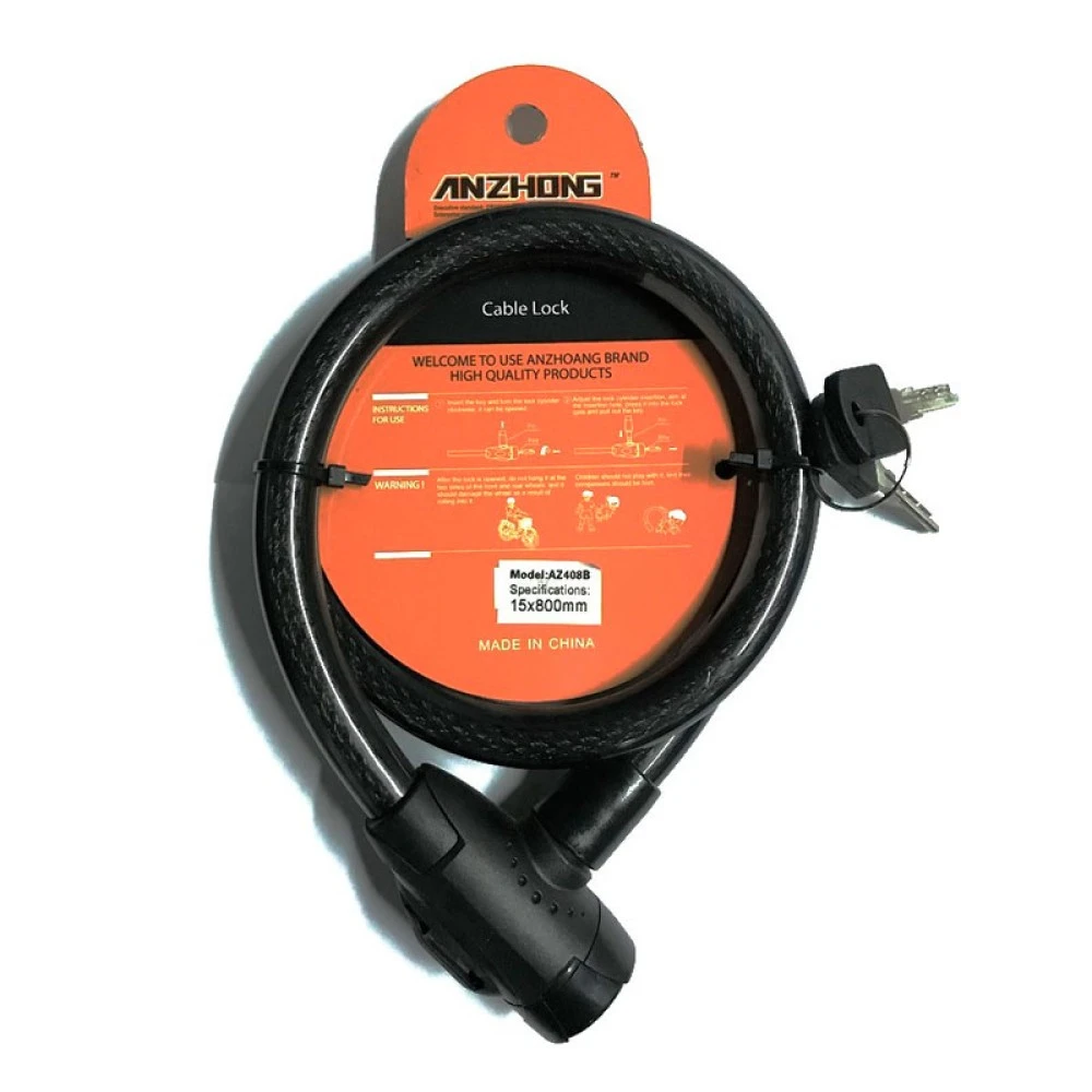 Замок тросовый ANZHONG мастер, 15 Х 800 мм, 2 ключа