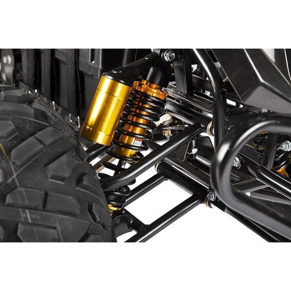 При мощности двигателя 1500 Вт максимальная скорость составляет 40-45 км/час. В сочетании с емкой АКБ электроквадроцикл способен преодолеть расстояние до 35 км.