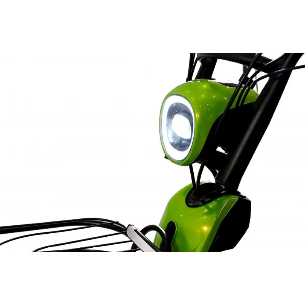 Колесная часть 14 дюймов имеет агрессивный протектор, легко сцепляемый с разными видом поверхности. Передняя часть оснащена большой фарой, разрешающе движение в туман, непогоду и вечернее время.