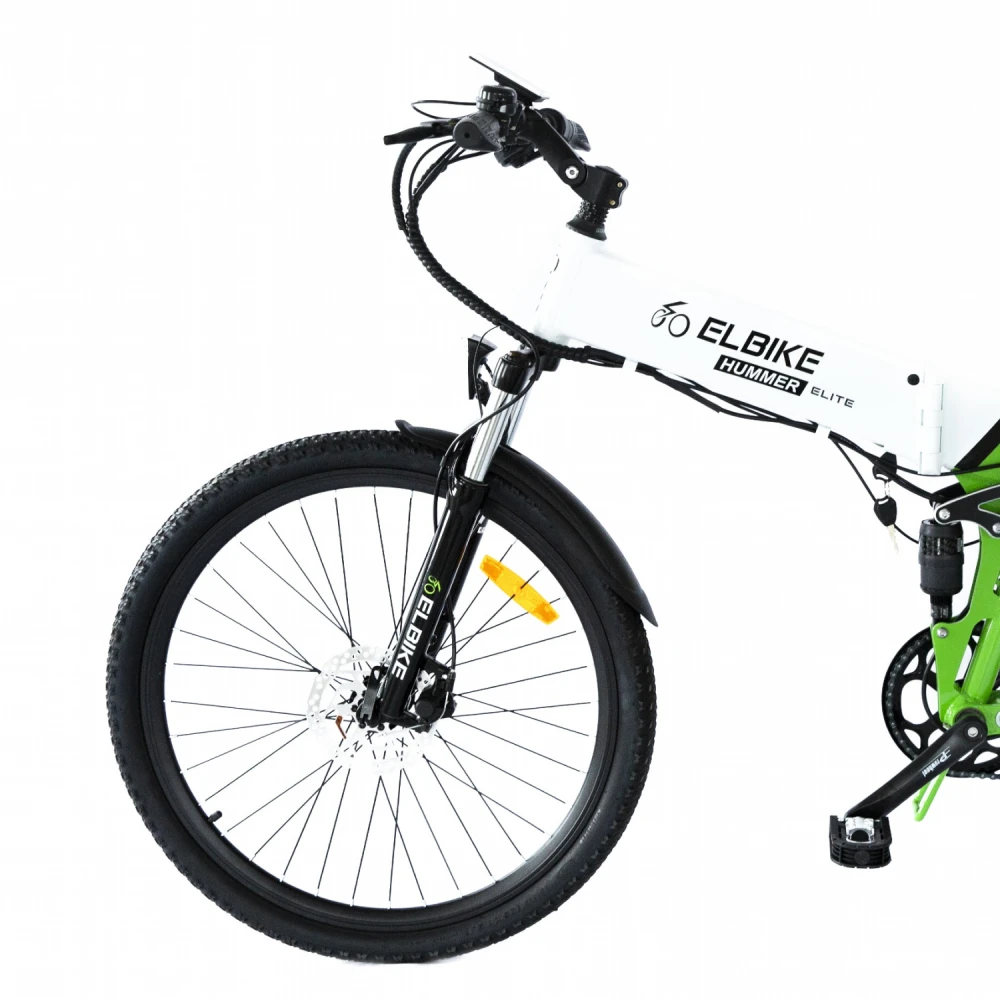 Электровелосипед Elbike HUMMER ELITE 13 Зелёный изготовлен в современном дизайне, с учетом пожеланий райдеров и наблюдений производителя. Максимальная грузоподъемность техники при массе 26 кг составляет 125 кг. Алюминиевая прочная рама выдерживает указанные нагрузки, не деформируется в течение всего срока службы. Если для вас езда по бездорожью и другой проблемной местности занимает лидирующие позиции, если прогулки на свежем воздухе важнее компьютера, предлагаем купить технику в нашем интернет-магазине.