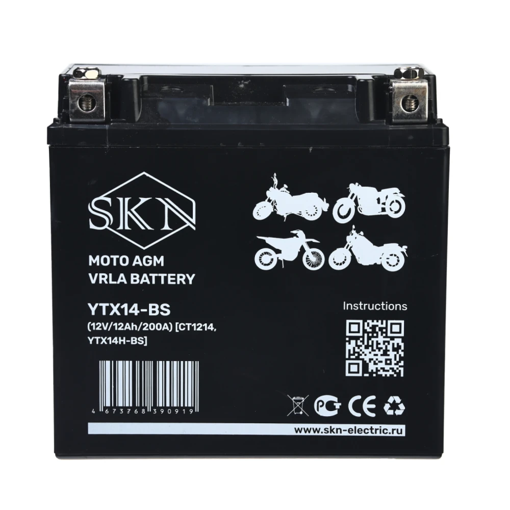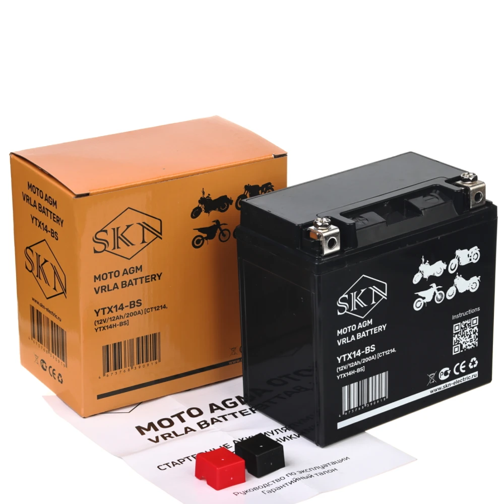 Аккумулятор стартерный для мототехники SKN YTX14-BS (12V/12Ah/200A ) [CT 1214,YTX14H-BS]